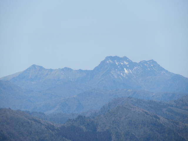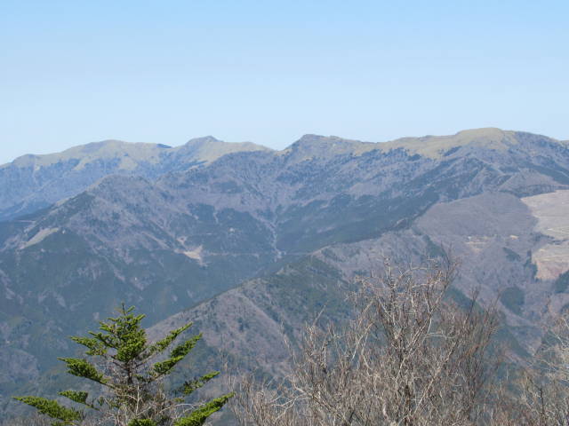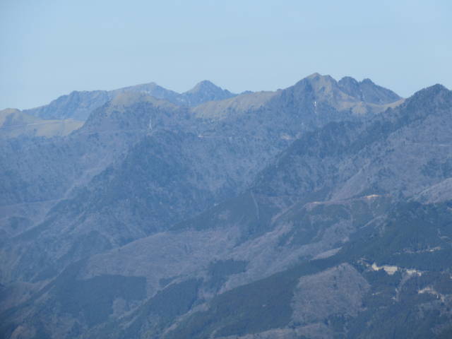 石鎚山系の左から、笹ヶ峰・ちち山・冠山・平家平・・