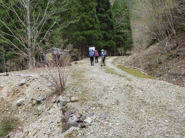 見覚えのある作業小屋、登山口までもうすぐ・・