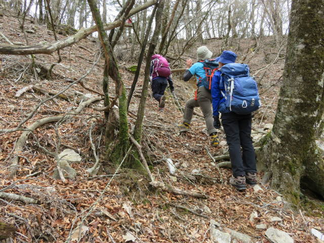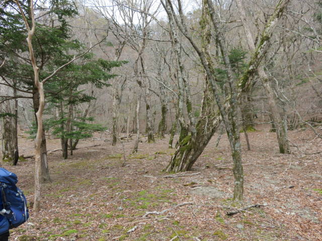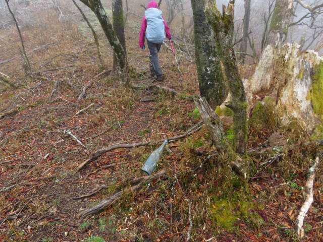 踏み跡薄いので、赤テープとGPS頼りに進む・・前回来た時より倒木多い・・