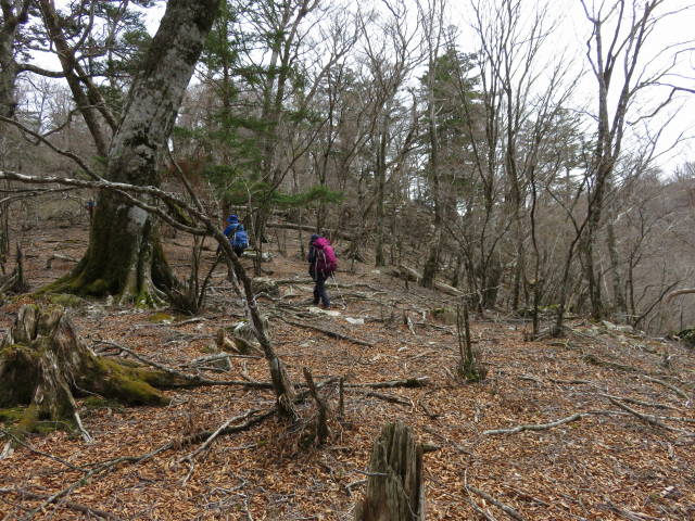 稜線をたどって夫婦ブナに着いた、立派だ・・健在で一安心・・