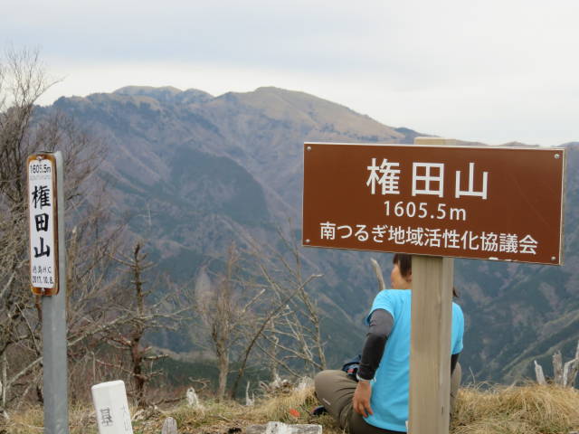 権田山に着いた・・立派な標識あるが、途中はとてもワイルド・・