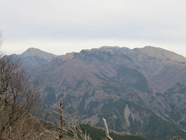 山頂からの剣山系・・手前が槍戸山で、左奥から次郎岌・剣山・一ノ森・・