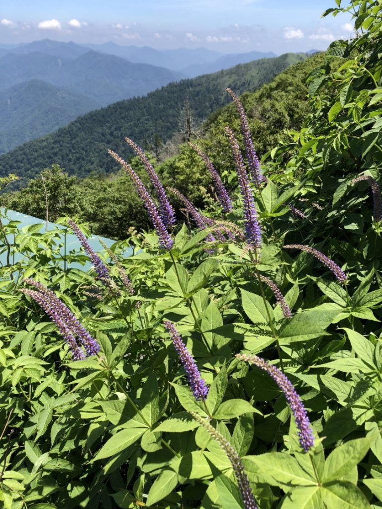 剣山ヒュッテの前に、ナンゴククガイソウがいっぱい・・