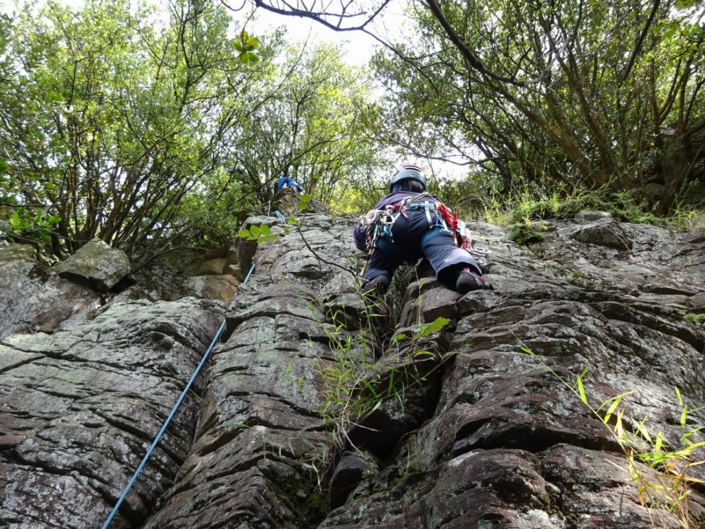 違うルートをトップで登る彼女・・厳しいルートも果敢に攻める・・