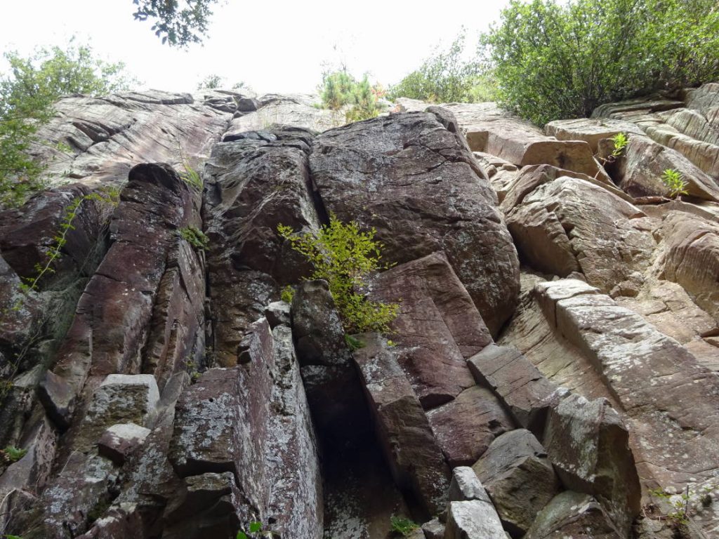 ほぼこんな感じの、オーバーハング有りの垂直な壁・・どこも厳しい・・