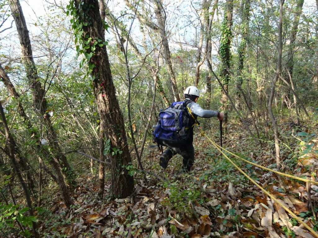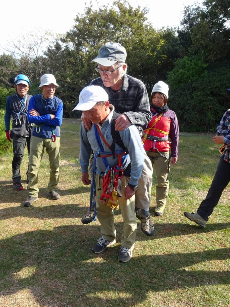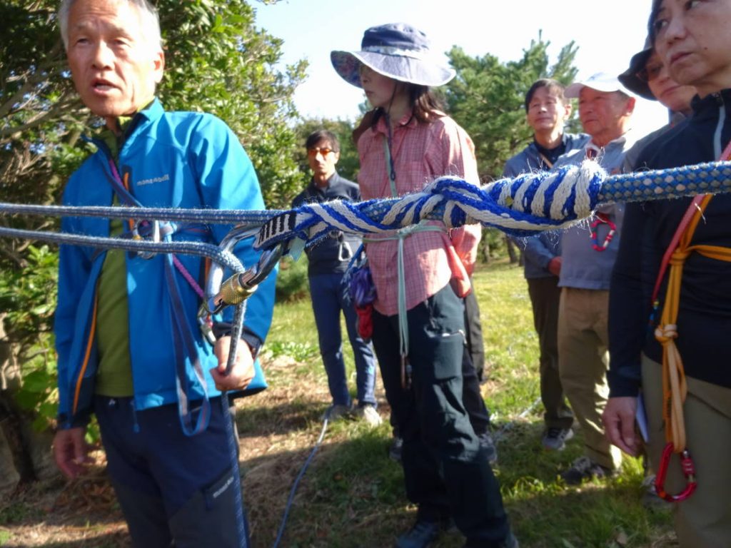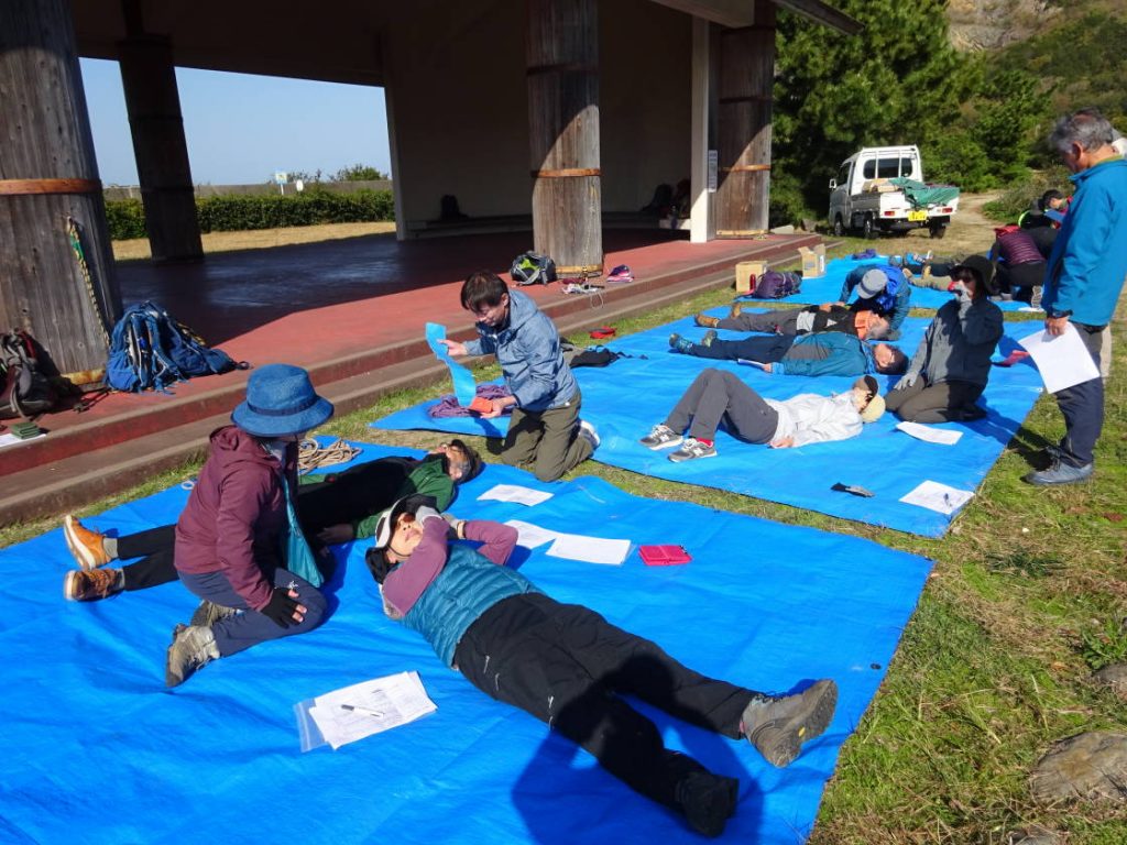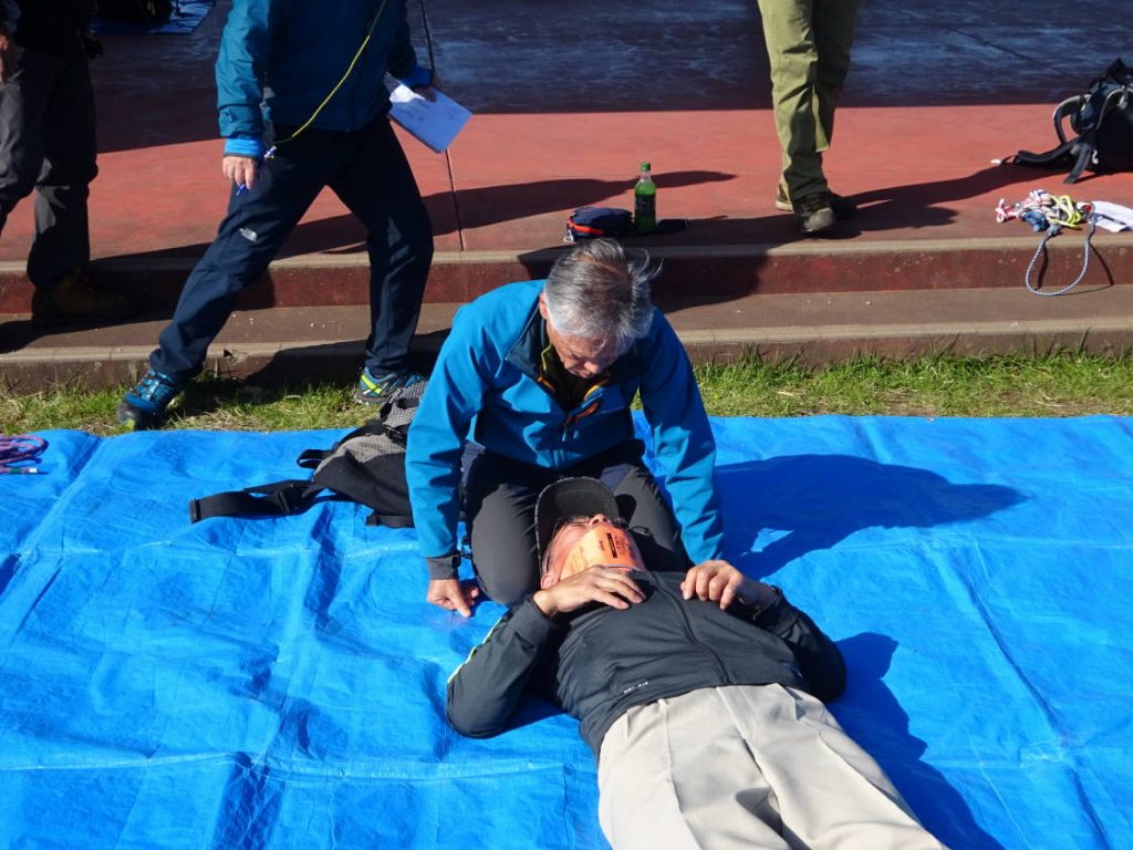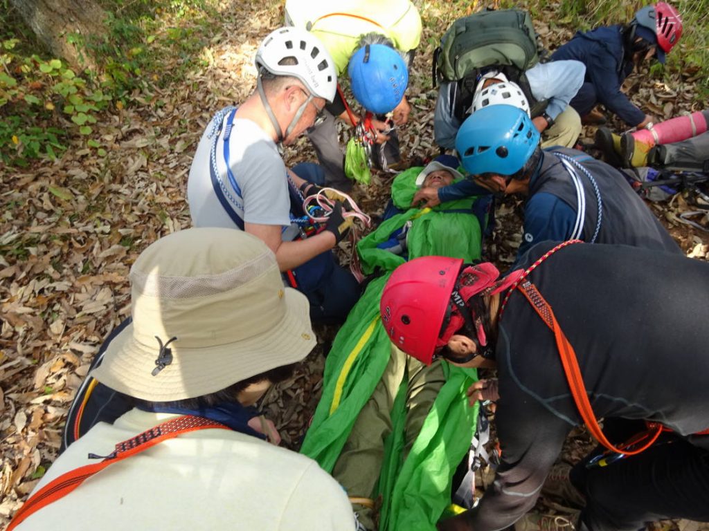 2班に分かれ実践訓練・・10m下の斜面で負傷者発見・・負傷者の現状確認中(3SABCDE)・・