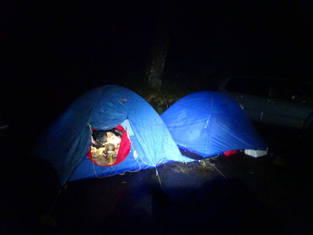 前日、登山口でテント拍・・もちろん前夜祭・・