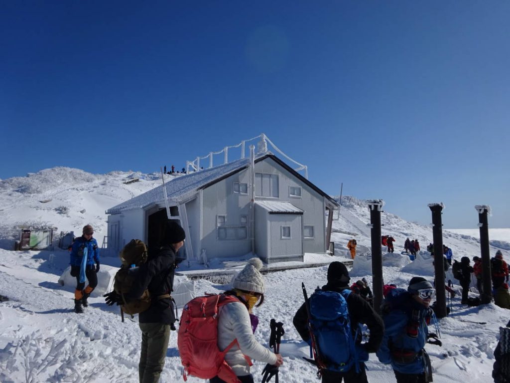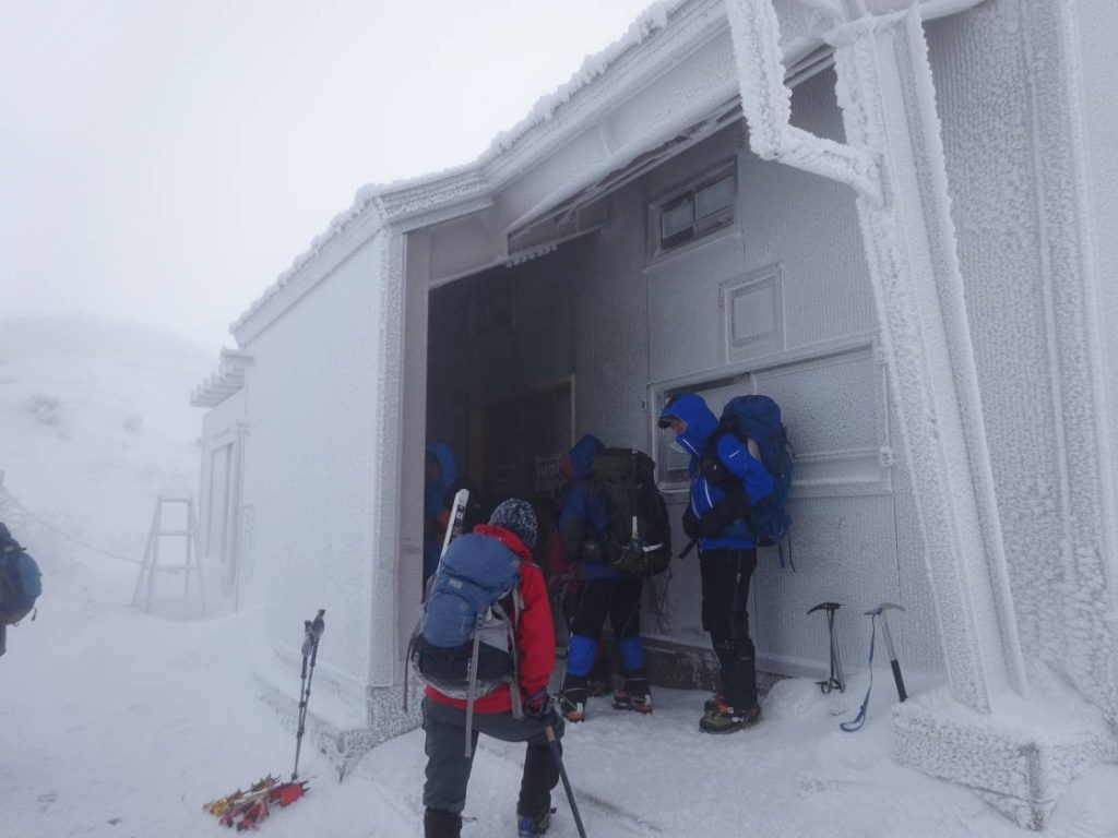 改築中の大山頂上避難小屋に着いた・・有志4人は、休まず剣ヶ峰に向かいます・・