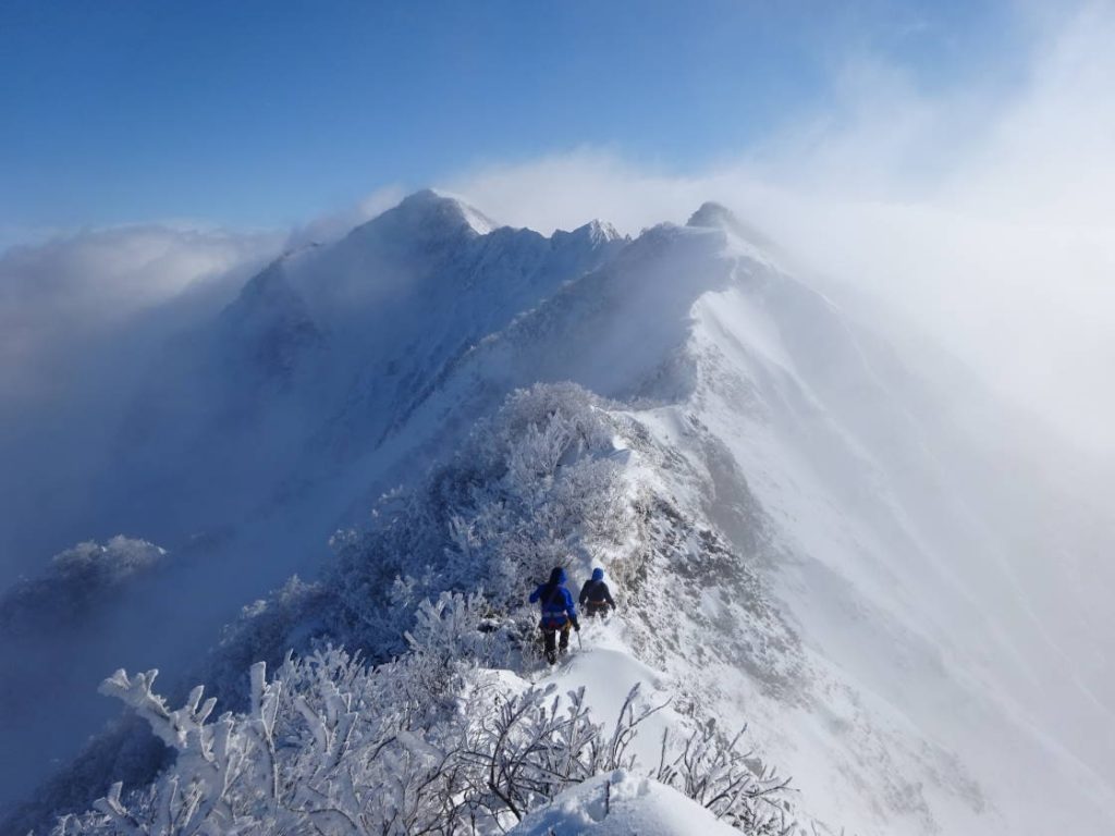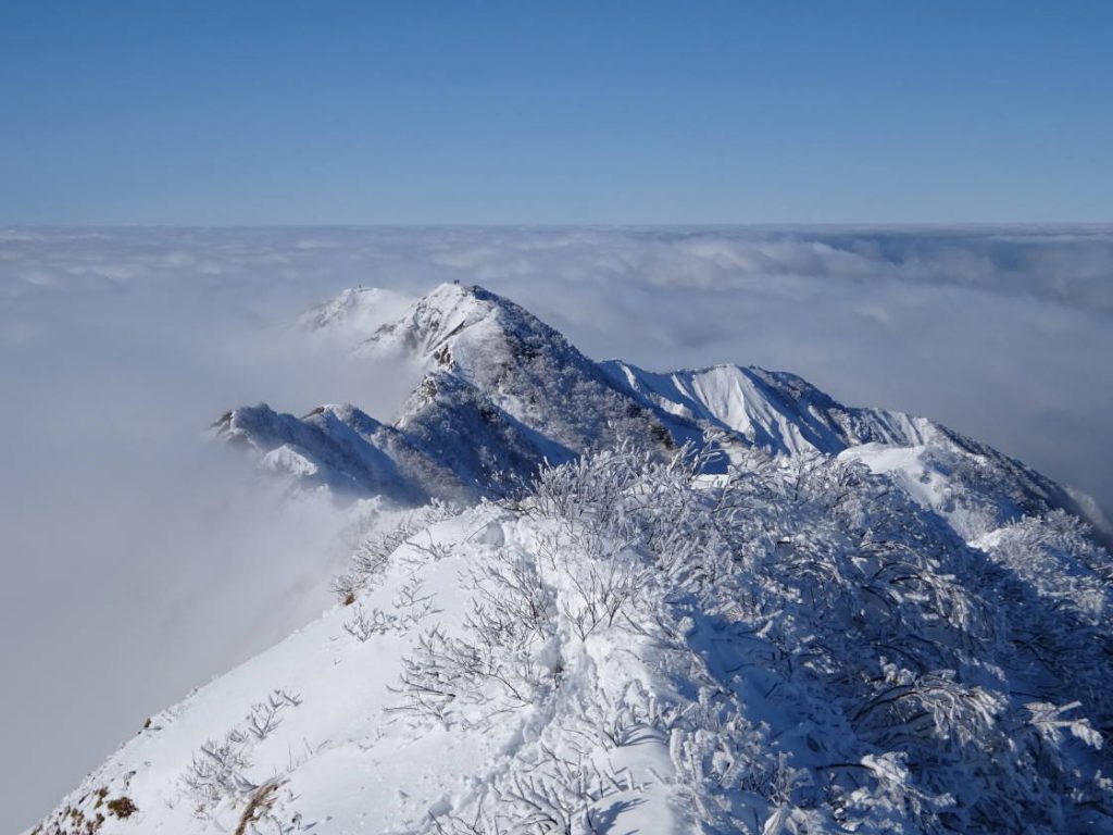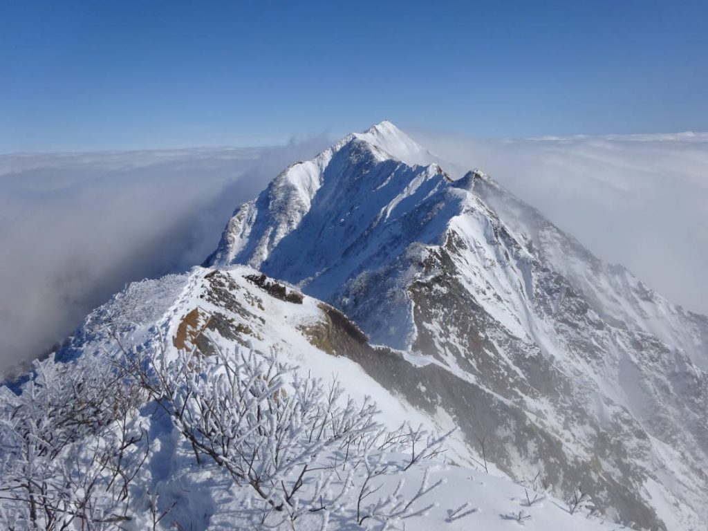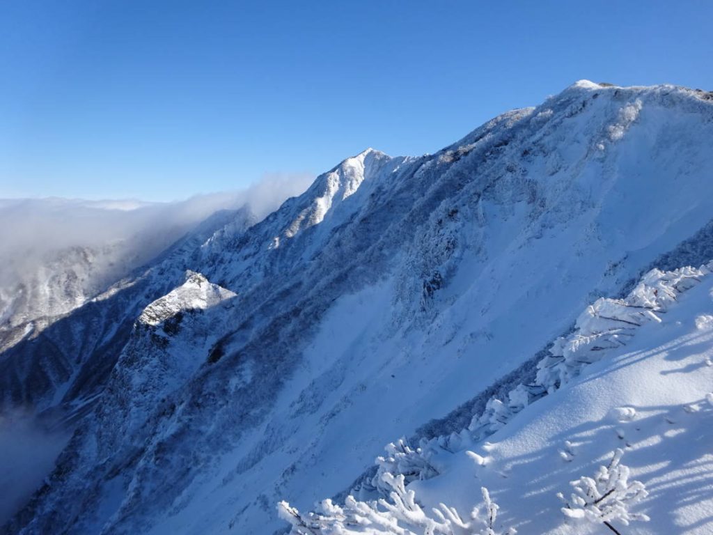右弥山、中央に剣ヶ峰と北壁が美しい・・