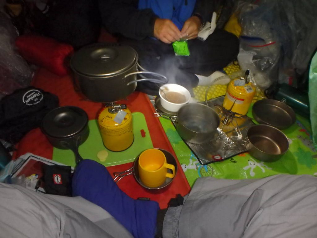 前日、御嶽山より移動し、入浴食事後八ヶ岳山荘に着いて仮眠室で宿泊・・(2000円なのに2段ベットで布団有り) あくる日ゆっくり起き、赤岳鉱泉まで行くが天候今一・・