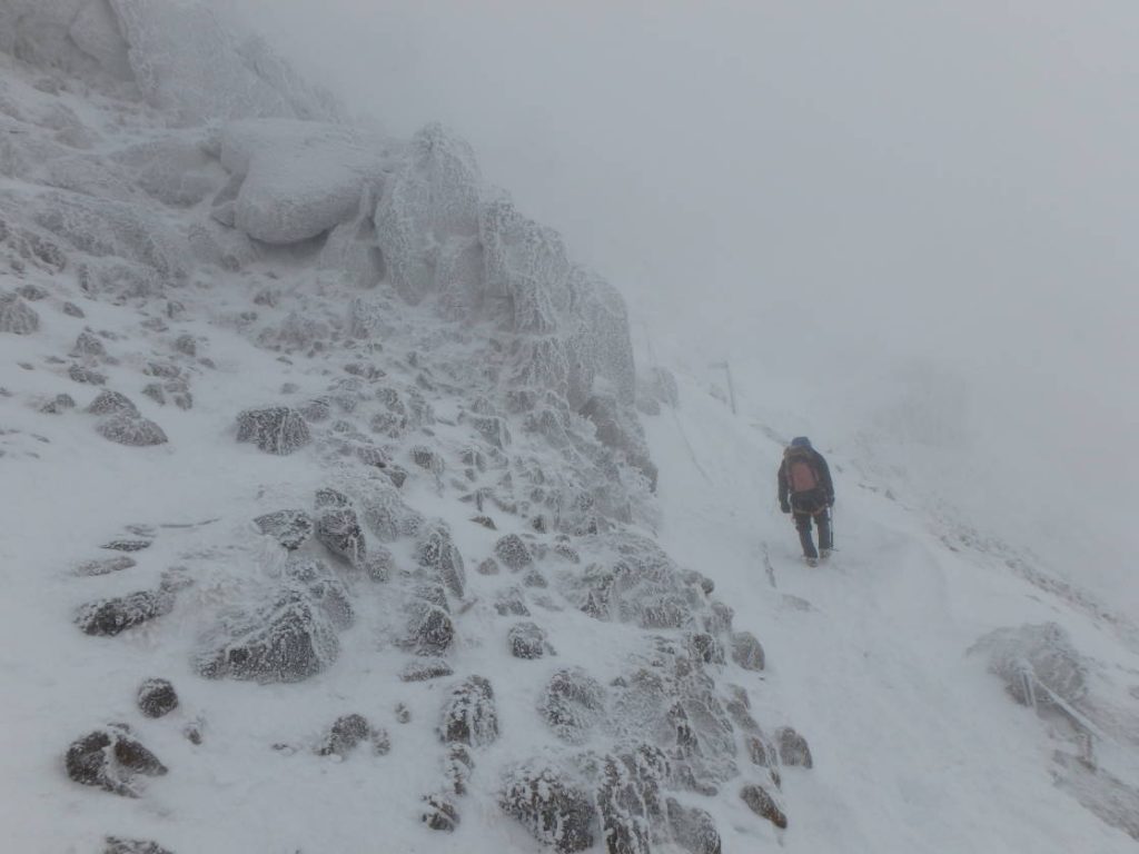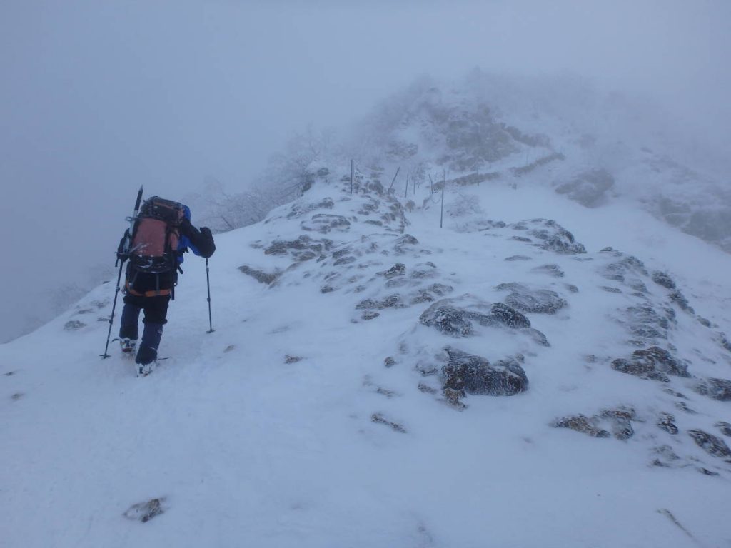 もうすぐ山頂直下の核心部・・こんな天気も、なんか楽しい・・