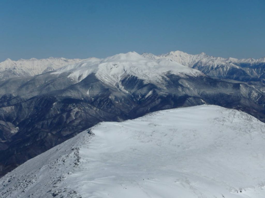 北側に乗鞍岳と北アルプスの名峰が見える・・手前継子岳・・