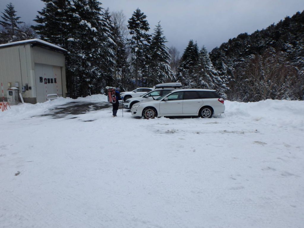 着くと1台駐車しておりもう出発してた・・20㎝位の新雪が積もってるが、先行者が居り、ありがたい・・
