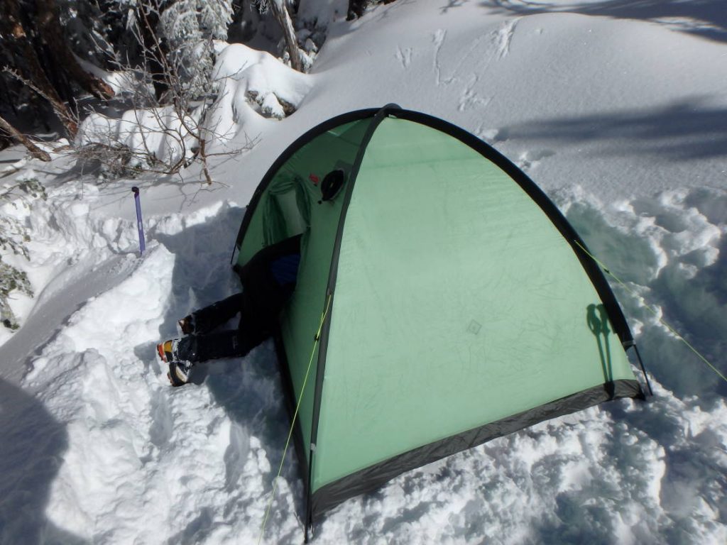 森林限界手前で、今日のお宿設営・・いい場所があった・・