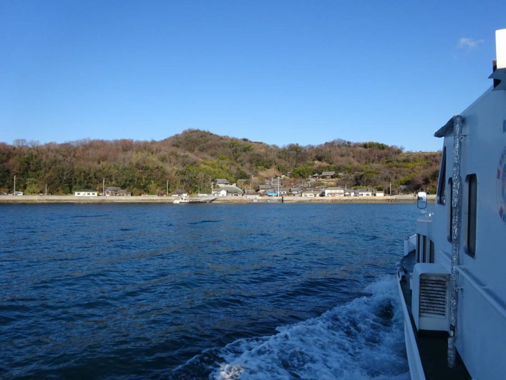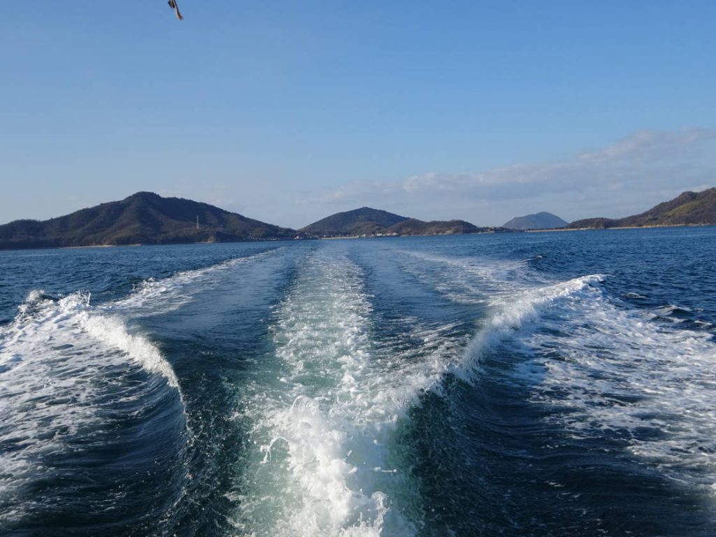 詫間町の宮の下港から志々島港へ定期船で向かう・・志々島が見えてきた・・