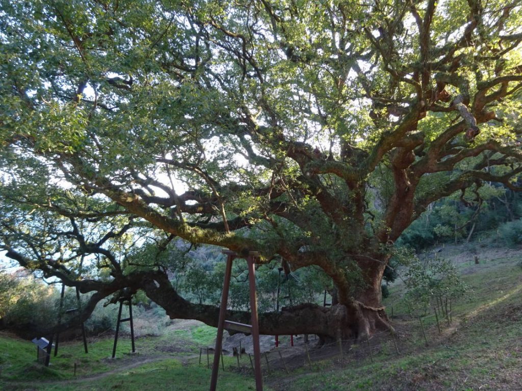 木の周りを歩く周回道があり、横から見ると枝ぶりがすごい・・枝が根元から出てるのは、昔土砂崩れで数m埋まってるからだそうです・・