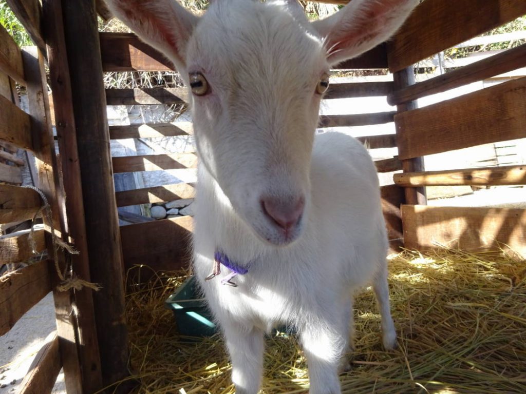 横尾の辻を下り、海岸線を歩いていくと港の手前でヤギさんがいる・・今年の1月11日に2匹の子ヤギが生まれてた・・