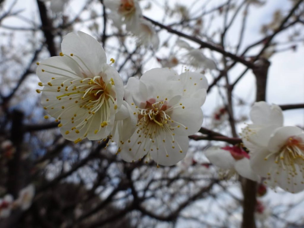 城山に向かっていると、ところどころに白梅が咲いてた・・もう春・・