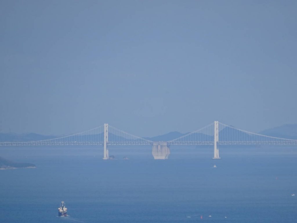 美しい瀬戸の島々をバックに・・左が高見島で、中央広島、右奥が本島・・