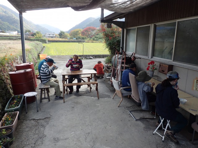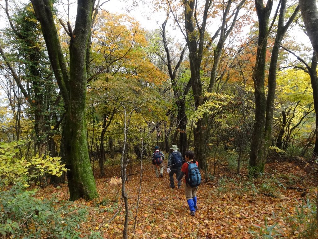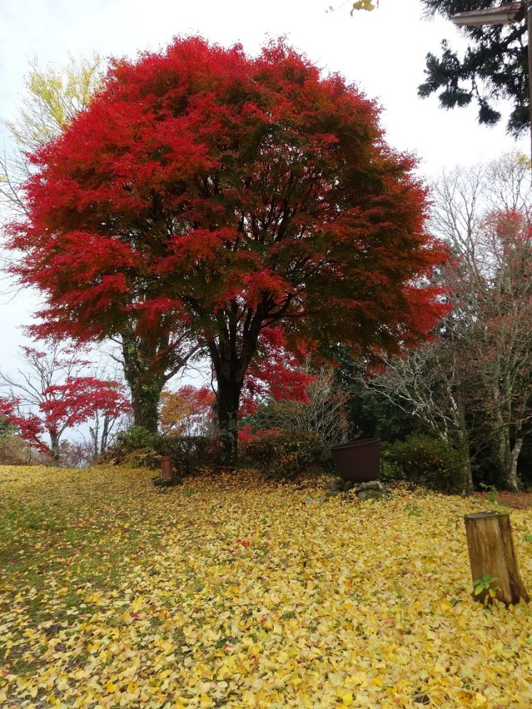 コロナで香川県連参加の登山グループのいろいろな企画が中止になった。女性交流登山も一ケ所に集合するのが本来なのだが、今年は各会、別々のところでやり、無線機で交信するというリモート交流で実施された。私たちの会は大川山(だいせんざん)登山である。8時に柞野登山道の駐車場に集合する。駐車場で山筋体操のストレッチを行って出発する。中腹の中寺廃寺跡に立ち寄る。展望台から満濃池、高見峰、瀬戸内海が見渡せる。中寺を過ぎると道は急坂を繰りかえす「根性だめし道」となる。この困苦に耐えたどり着いた稜線道と頂上の紅葉はご褒美だ。まことに今年の紅葉はすばらしい。下りは中通へ、随神門をとおり下山する。ふもとで三嶋製麺所の醤油うどんを食す。