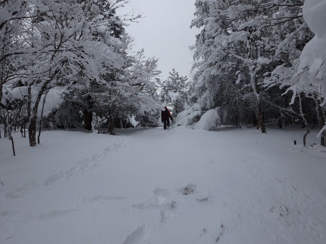 雪の丸笹山 山行報告 2020.12.302021.08.2112月20日(日)、スタッドレスタイヤでラフォーレつるぎ山まで行けました。標高800mから道路に雪が出てきて標高1400mのラフォーレつるぎ山の道路には15cmの雪でした。木の種類によって雪の着き方が違うのが芸術的で素敵です。「ラフォーレつるぎ」の駐車場にて丸笹山登山道 雪の散歩道丸笹山へ行く途中の雪の木々