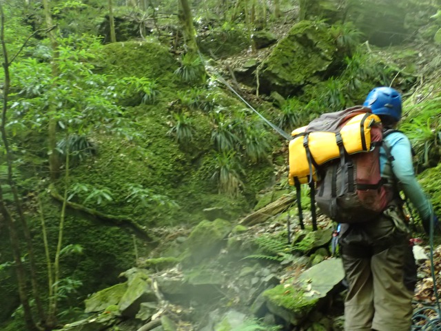 7月23日、24日。今年の沢登りはじめとして、「愛媛の谷」で明るく初心者向けと書いてある、鞍瀬川支流の御祓川本谷へ3人パーティで行った。大滝はなく、淵がある小滝が多い沢である。小滝、3m、5mこれが曲者で、登れそうと思い、泳いで滝にとりつくと、水に磨かれた変成岩で手がかりがすくない。危ういバランス、倒木利用、ナッツ支点を駆使した。滝を攻めるとなると、初心者向きではなく、技術的にはむずかしかった。沢のボルダーか。早めに高巻きすれば問題はないが。滝部に入ってからの高巻きは危ういとこもあった。下山道に使おうとした、記録の道はあれて不明となっている。林道で尾根をこえ滑川へ下山した。いろいろあって12時間ぐらい歩いた。下山やれやれでした。写真には、登るのに一所懸命で、残念ながら滝や泳いでいるところは写っていません。