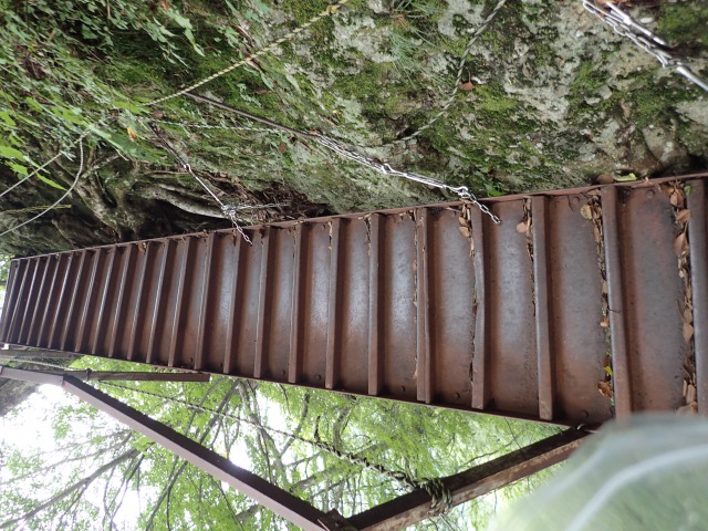 9月の沢登り 名野川本流 山行報告 2021.09.089月4日、5日 吉野川源流域の名野川本流に行った。4日は、キャンプした。ジンギスカン鍋がよかった。河原でのんびりした。5日は、沢登りと山登り組にわかれた。名野川は筒上山、手箱山を源流とする谷である。屏風岩 沢をふさぐようにある。カツラの大木トリカブト属レイジンソウ??トリカブト属タンナトリカブト??手箱越からの筒上山筒上山巻き道の危うい鉄階段名野川登山口まであと少しであらわれる腐って傾いた木橋