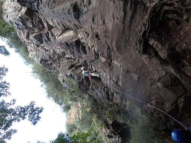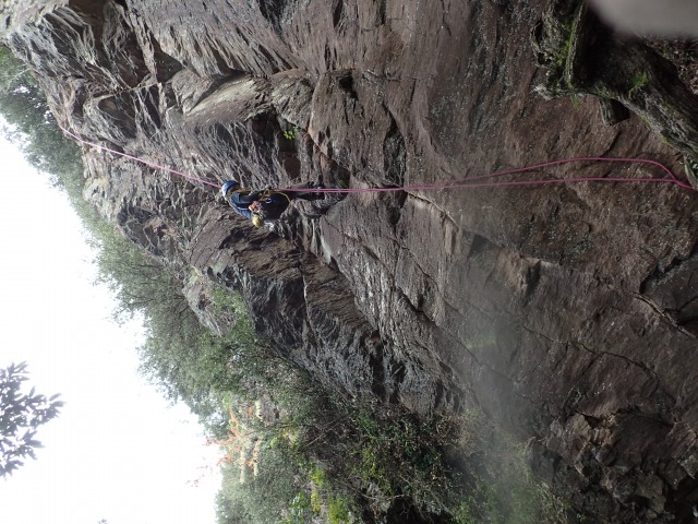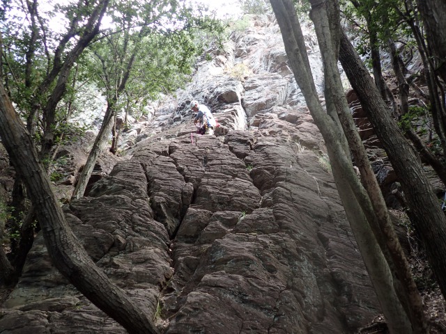 五色台 坂出市にある大屋冨の岩場で岩登りの基礎をまなびました。