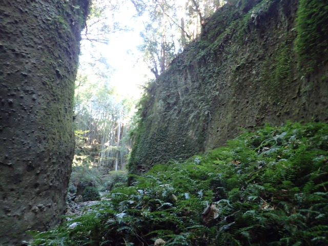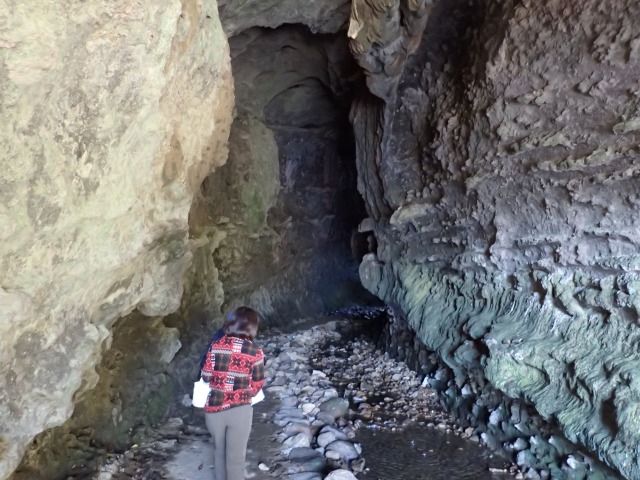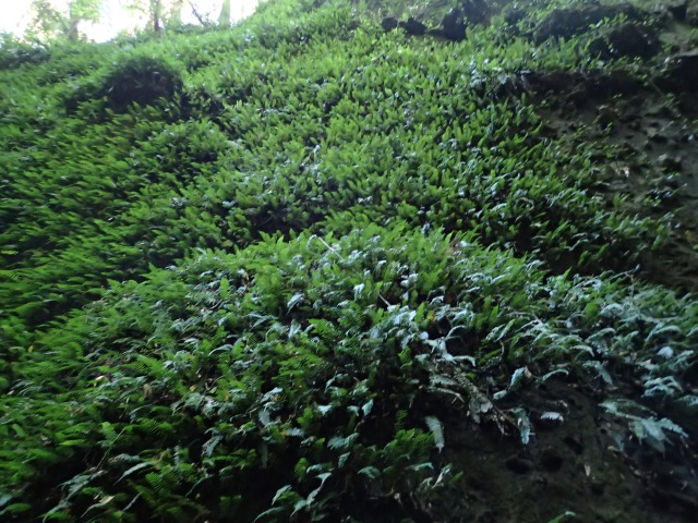 そのあと、伊尾木洞にいきました。海蝕で穴が開き、その後の隆起で陸上になった洞窟をくぐると、シダの群落があり、垂直の岩壁にびっしりとはえたシダの世界は異世界の感でした。