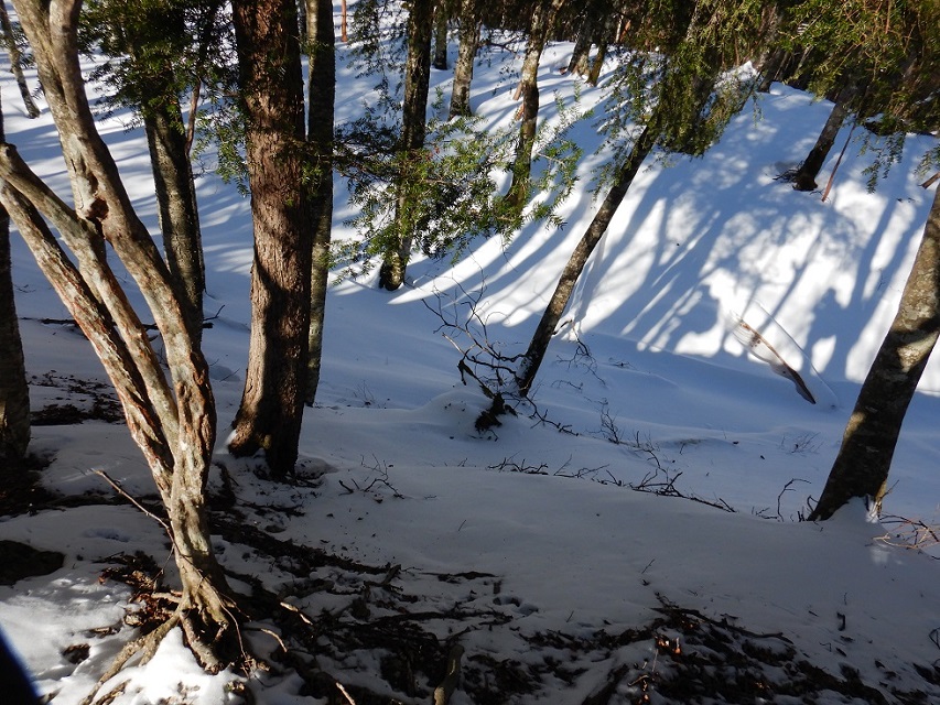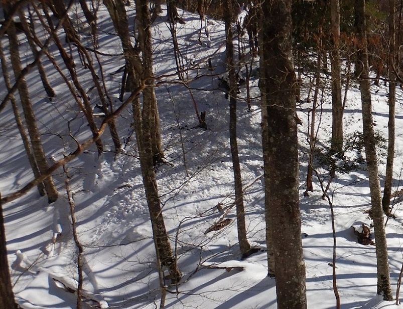 1月の三嶺紀行 山行報告 2022.01.211月16日 三嶺雪は少なく期待外れでした。樹林帯までで引き返しました。ウサギや鹿、鳥、リスの足跡が見られるのは雪山の楽しみのひとつ。ところで鹿が暴れたような10m四方の踏跡が何か所もあった。いったい、何をしたのでしょうか? ダンス? 決闘?誰か教えて?樹林帯を歩く。矢筈山と寒峰を望む鹿の踏跡(暴れたような踏跡)