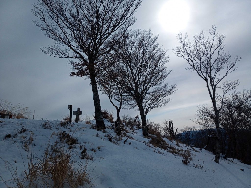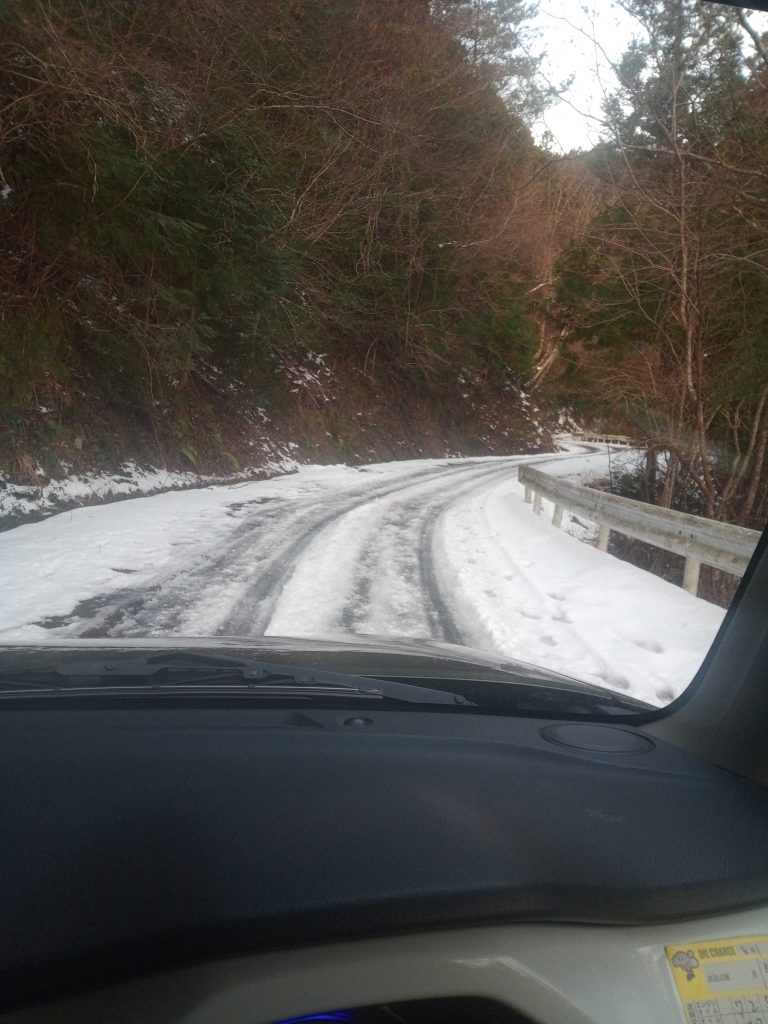 凍る道と国見山 山行報告 2022.02.13国見山へ。霧氷は見られなかったが、山頂は展望バツグン。讃岐富士や善通寺五岳まで。ラクして登れる山だが、雪道の運転怖かったです:たらり:下の登山口から上の林道登山口(おうどう峠)へ向かうべく左折したところです。滑るの怖くてブレーキかけたら発進できなくなり、いったんバック。初めてグリップコントロールを使いました(-_-;)
