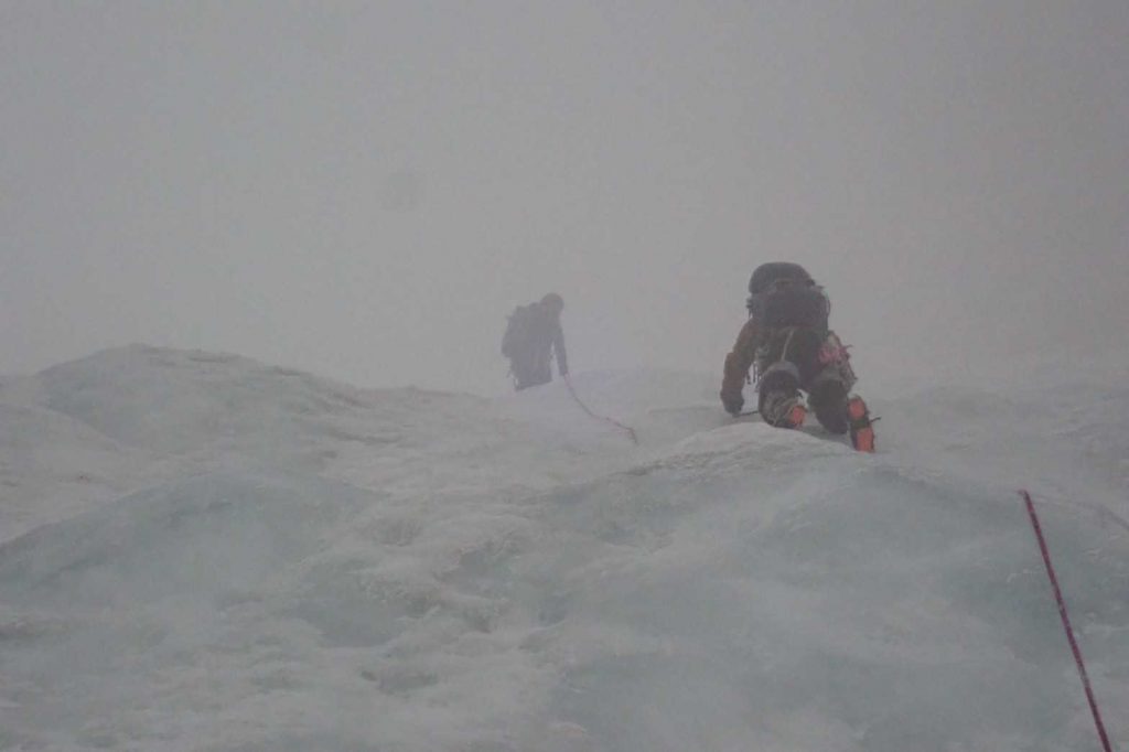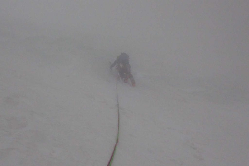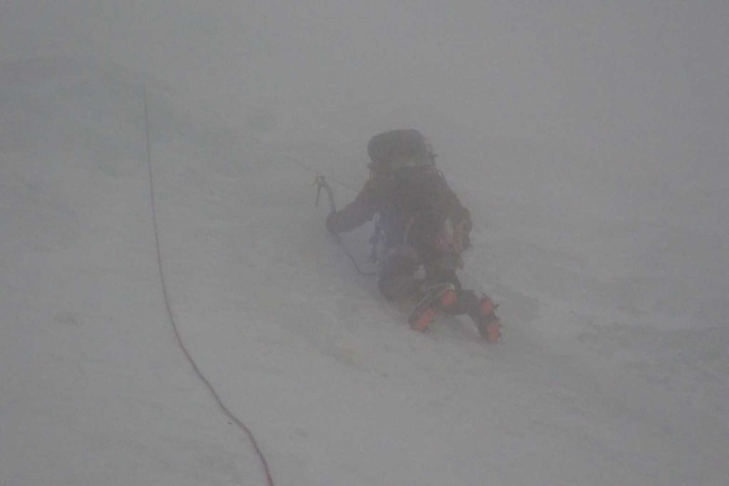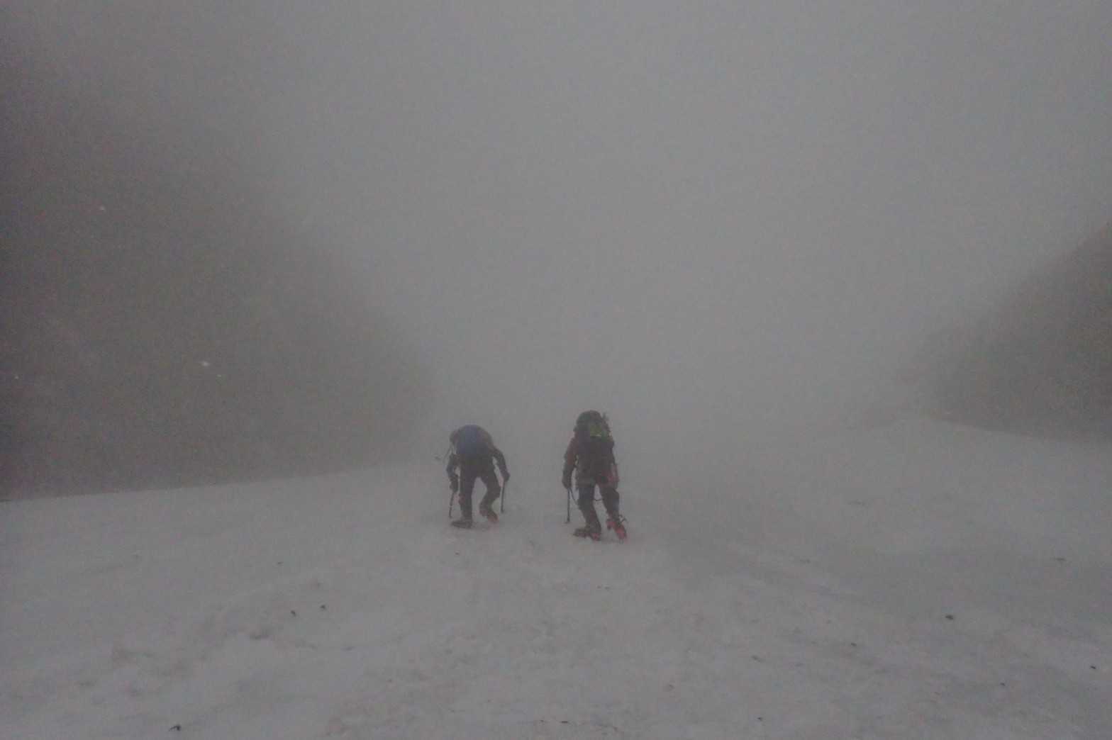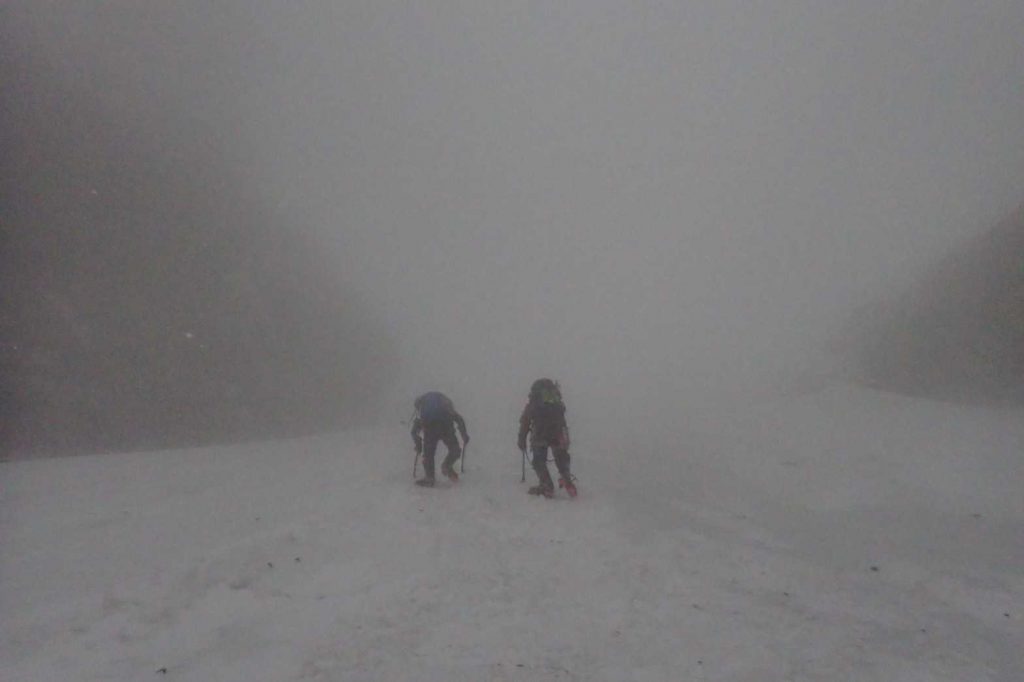 天狗沢を登り、弥山に向けて主稜線を縦し、夏道を下山しました。下るまでは風が強く視界も悪い状態でした。