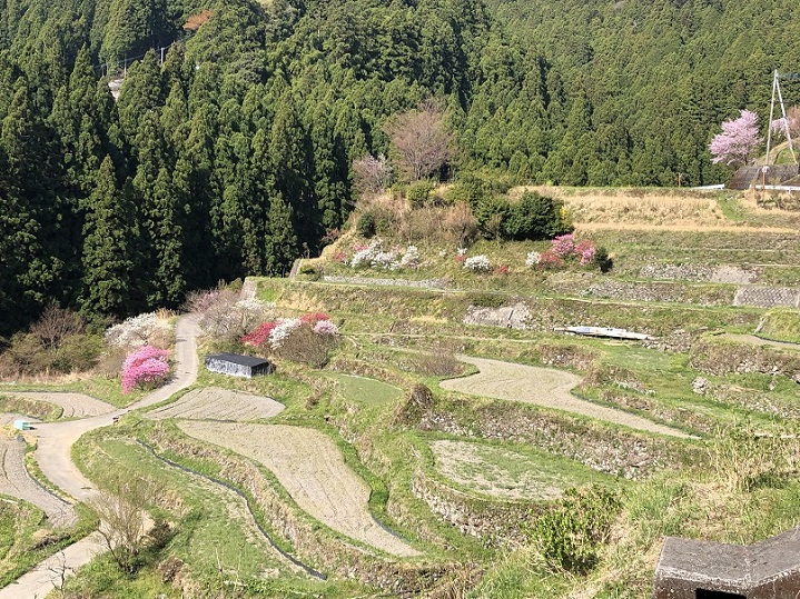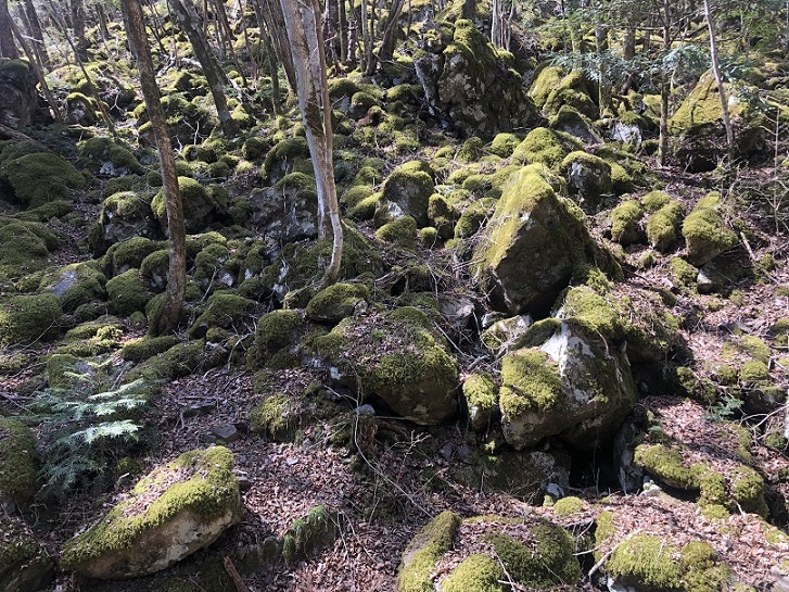 山犬嶽 棚田と苔 山行報告 2022.04.132022年4月9日登山口までは山犬嶽専用駐車場より車道を樫原棚田の中2km歩く。樫原地区は桜満開でウグイスが鳴き桃源郷の様。山犬嶽には広い水苔群生地があり、大岩、樹木に貼りついた水苔は見事。その中をミニ四国八十八ヶ所が点在して趣がある。樫原棚田と桜水車樫原棚田樫原地区民家の桜樫原地区民家の桜水苔群生地水苔名所の中のミニ四国八十八ヶ所水苔群生地大岩と水苔石鎚神社岩のアーチ国道193号線で見かけた鹿の群れ