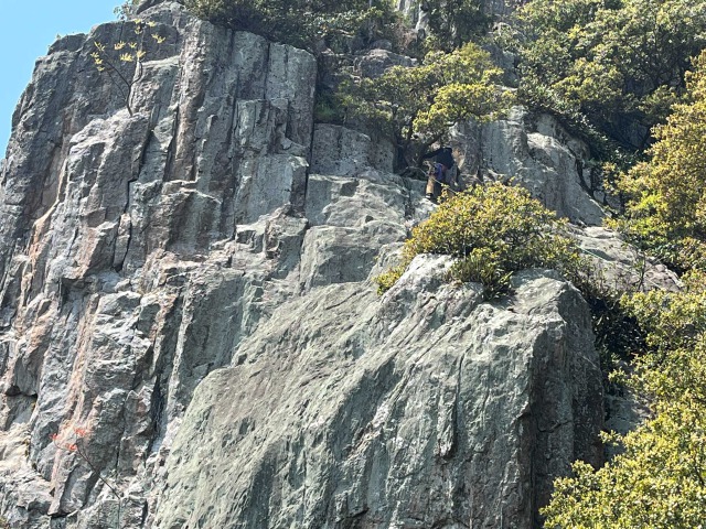 2022年4月20日 会員1名会員外1名の2人で、小豆島拇岳に登ってきました。当初は赤いクラックか、その右のルートの予定でしたが、取付きに他チームがいたので変更し、残置のある登れそうなルートをごぞごぞ登ってきました。