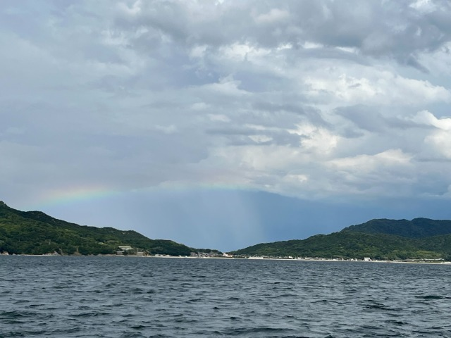 ヨット山行 山行報告 2022.10.07ヨット山行は最終的に参加者が3名となり2022年9月3日だけのクルージングになりました。志々島に上陸する予定でしたが風が強く断念、陸上ではゲリラ豪雨があった様ですが海上では雨にも遭わず適度な風でクルージングを満喫しました。虹