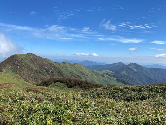 笹ヶ峰 山行報告 2022.10.072022年10月2日、下津井登山口から二百名山の笹ヶ峰へ。メンバーは会員3人。整備されていて、植林帯は明るく、ずっといたくなるような居心地のよさ。笹の急登をのぼりきると、美しいどこまでも続く山並み。秋空の下、山頂からの眺めを堪能しました。ただし、登山口手前は未舗装路(悪路)あり。