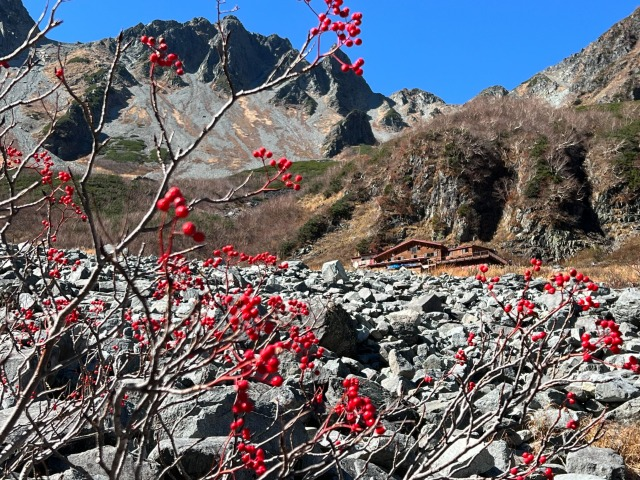秋の穂高 山行報告 2022.10.2710月18日〜23日 三泊五日(車中泊二日)上高地〜涸沢〜北穂高岳〜涸沢岳〜奥穂高岳のゆったり一人山行に行ってきました。涸沢の紅葉はすでに終わりナナカマドが赤い実を残すだけになっていました。一週間前に降ったという雪も溶け絶好の登山日和に恵まれたので奥穂だけのつもりが頑張って北穂、涸沢岳、奥穂と縦走しました。約30年振りに訪れた涸沢は夏に行った剱岳と併せて私の中では聖地の様な所で至福の時間を過ごすことが出来ました♪