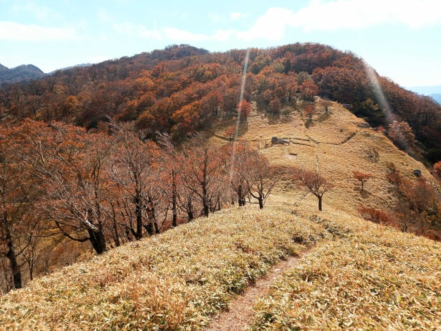 佐々連尾山 山行報告 2022.11.092022年10月30日、会員3名で大ブナの駄馬の黄葉を見に大森山から佐々連尾山。そしてブナの駄馬へ。美しい笹原の稜線を抜け大ブナの駄馬。おとぎ話に出てきそうな非日常な世界でした。10年以上前に中之川から登った思い出深い山です。林道荒れ果てハスラーでは無理そうなので、坂瀬林道からアプローチするか、迷った挙句、白髪隧道南口から。そこまでも部分的にダートあり。