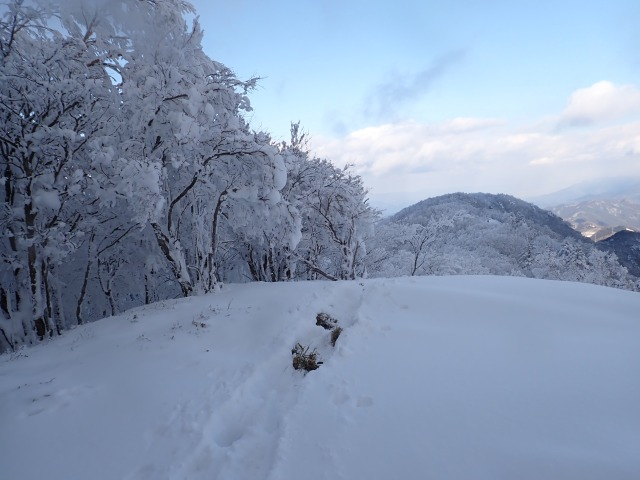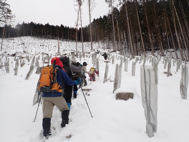 石堂山 山行報告 2024.03.262024年1月28日。会山行。暖冬のなか、寒波が来て、路面に雪。予定のとこまで車が入れず。造林地を通って、雪をかき分けていく。冬山という感じ。帰りも滑る車道に苦労して、暗くなってしまった。楽しい雪の散歩道は、きつい雪山となって充実したといえばいえる山行となった。