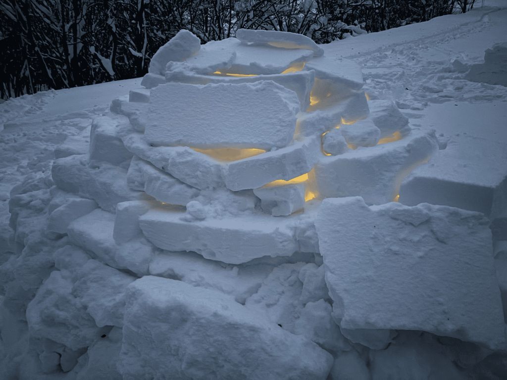 イグルー製作は手こずったが、なんどか修正して2晩目には快適なイグルーが完成!あと2~3回作ればかなりの腕前になる予感。