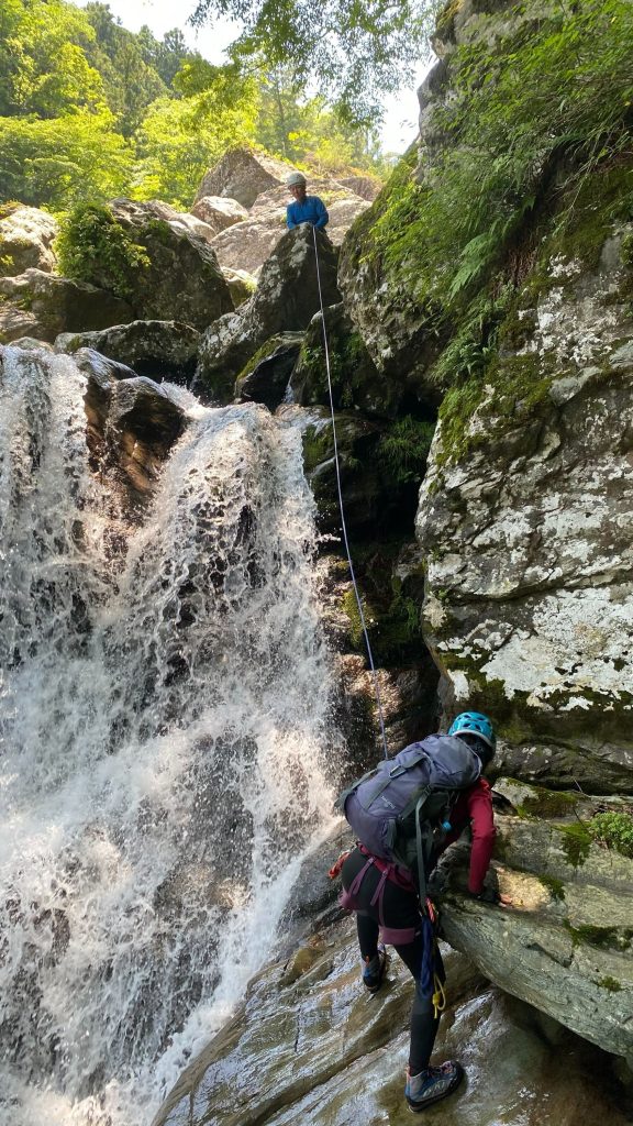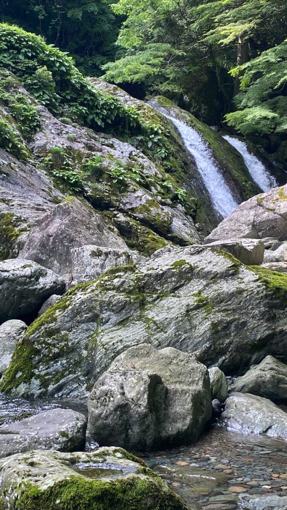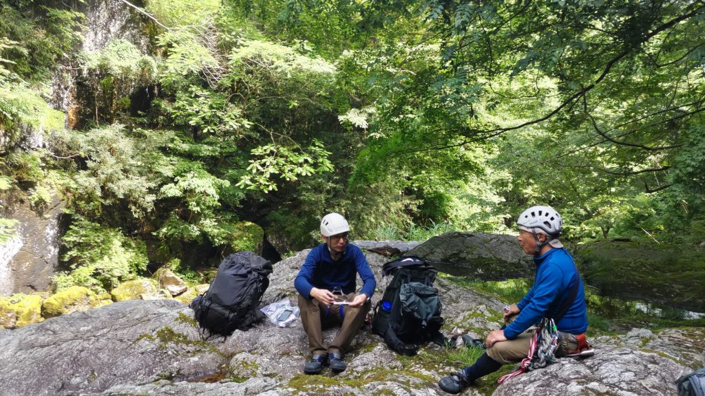 御塔谷川(2025年1回目) 山行報告 2025.06.192025.08.02会員3名 石鎚山の西之川登山口横から入渓。 最初は明るい歩きやすい沢田と思ったが、水量多く、大きい岩も多く、高巻きを入れながら登って行った。何度かロープを出したり、シュリングで引き上げたりしながら進む。 終盤で小さい滝を越えるところで着地に失敗😢ロープ出してなかったら滝壺にドボンだった。そのあとは小さい滝をいくつか越えたが、岩が大きく、高巻きして登山道に合流して下山。 今年最初の沢登りで怖かったが楽しかった。