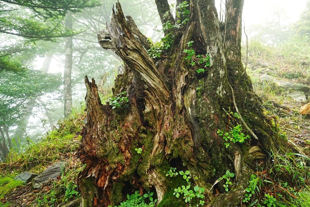 頂上付近には「紅簾石珪質片岩」という種類の大きな岩がある。高知県天然記念物だそう。