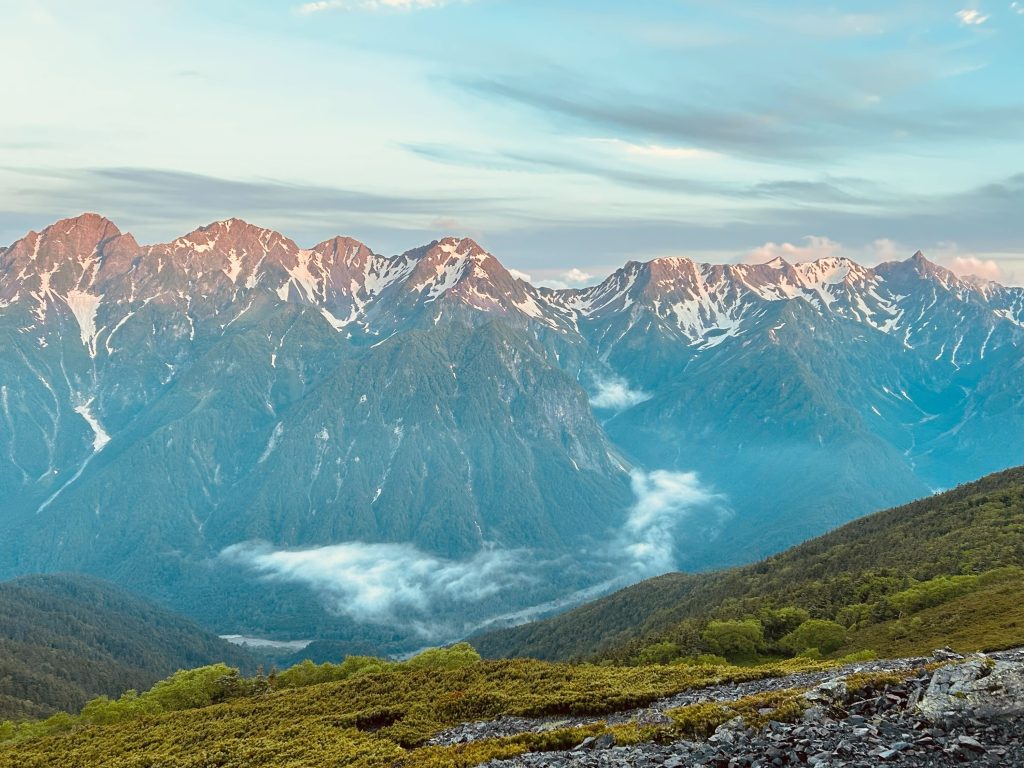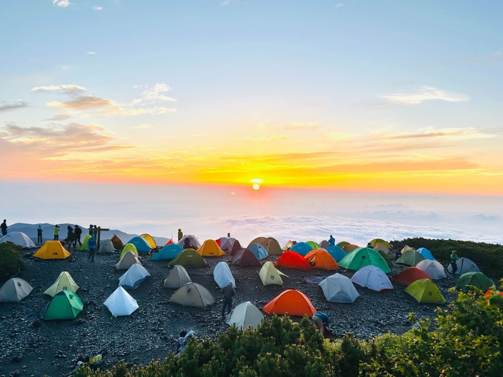 蝶ヶ岳ヒュッテでは、強風大雨によりストックシェルターが倒壊浸水しないか心配でしたが、耐え抜いたご褒美のサンライズは最高でした。