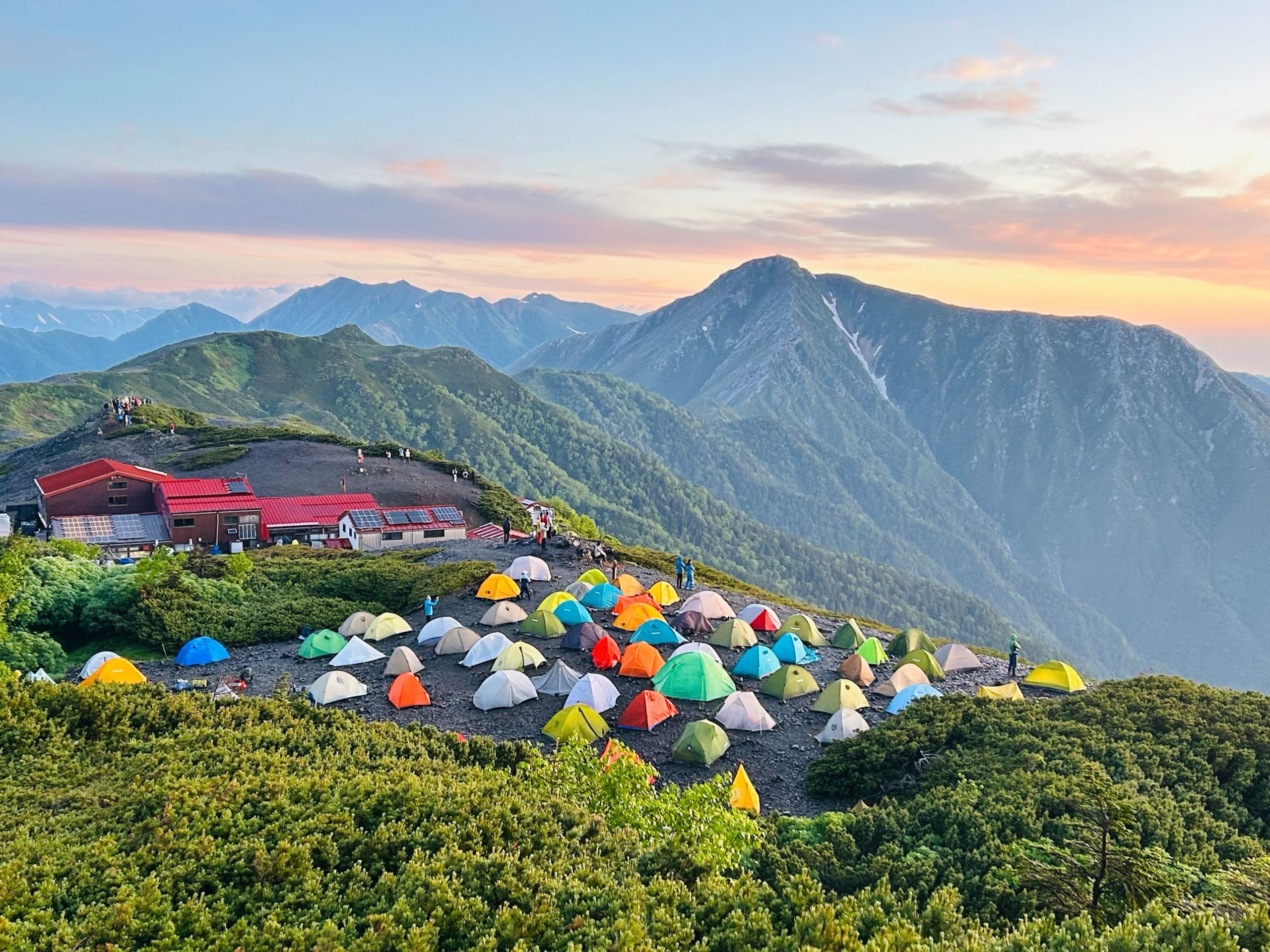 蝶ヶ岳ヒュッテでは、強風大雨によりストックシェルターが倒壊浸水しないか心配でしたが、耐え抜いたご褒美のサンライズは最高でした。