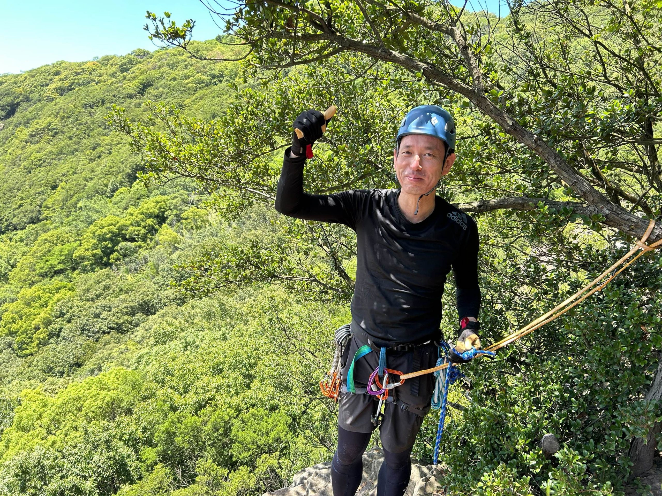 懸垂時にロープが引っ掛かり、会長に流してもらったが、支点の取り方やロープの流れも考えないとダメだと感じた。