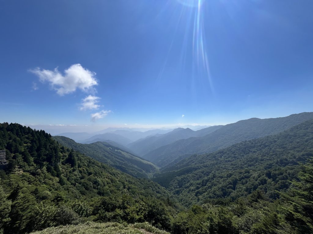 石堂山から御塔石を眺めて矢筈へ、ピーク手前の急登が手強い。快晴でパノラマ。