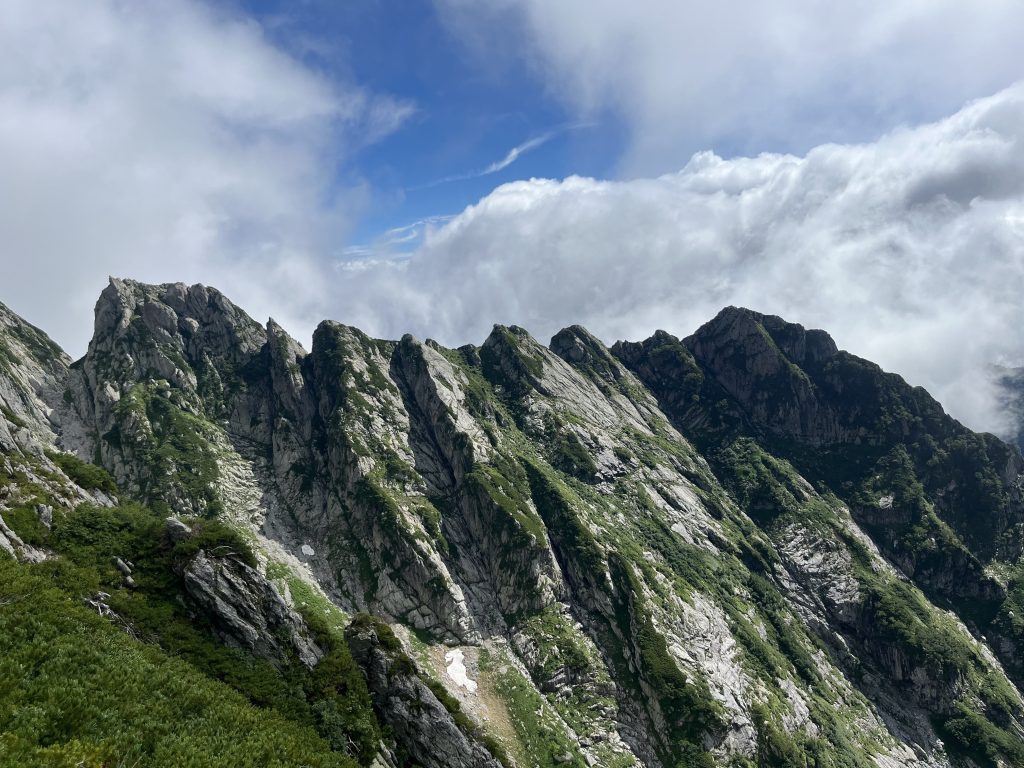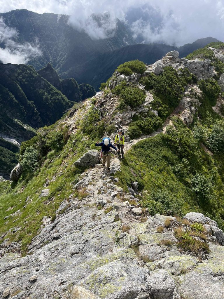 下山は別山尾根を行く。改めて登山道を見ると、鎖や梯子でよく整備されているものの、とても進みやすいルートとは言いづらい。厳しい山なのだなと実感した。