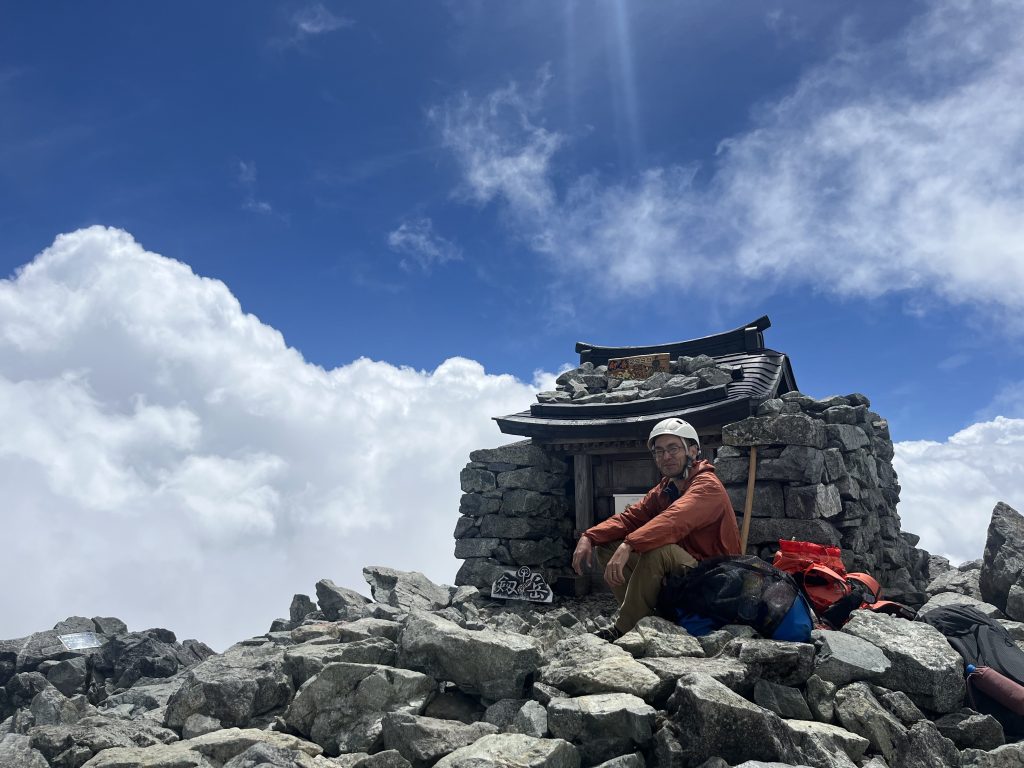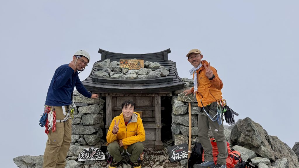 メンバー1名が高山病(?)により体調が万全でなかったものの、ペースを調整して、何とか全員で登頂!下山は別山尾根を下る。