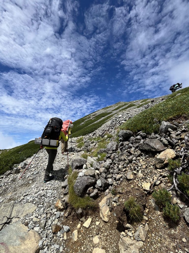 下山でも、Yさんはかなり息が上がりやすく、辛そうだ…荷を軽くし、ペースを落とし、休憩を多めに取り、なんとか下山。