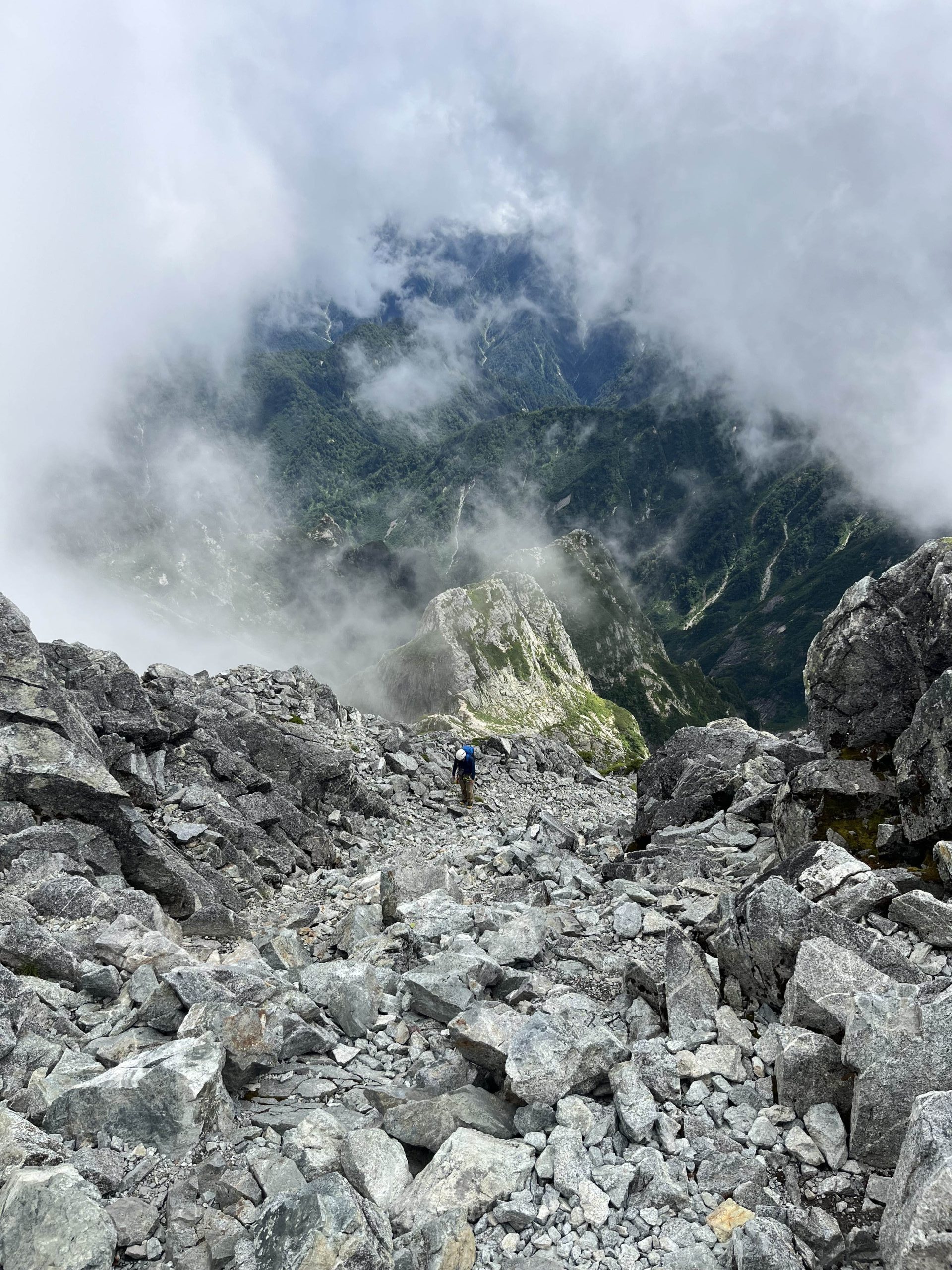 下山は別山尾根を行く。改めて登山道を見ると、鎖や梯子でよく整備されているものの、とても進みやすいルートとは言いづらい。厳しい山なのだなと実感した。